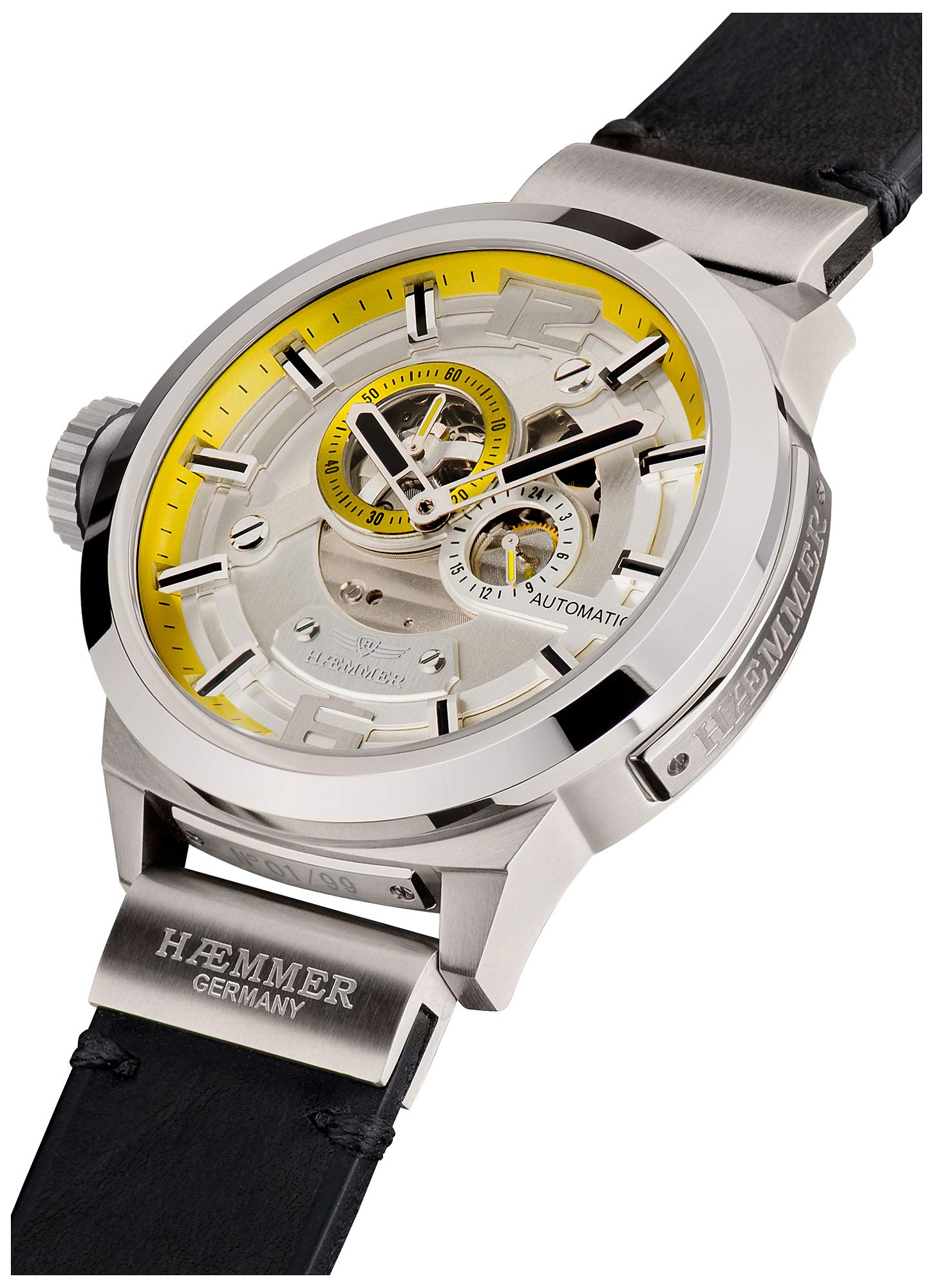 ✔ 100% AUFFÄLLIGKEIT: Die mattierte Edelstahl-Uhr mit polierter und veredelter Lünette stellt eine unkonventionelle Symbiose dar. Die Kombination aus überdimensionalem Gehäusedesign und extravaganter Gestaltung ist ein absoluter Eyecatcher. Das silberne Skeleton Zifferblatt betont das rebellische Wesen der Marke HÆMMER