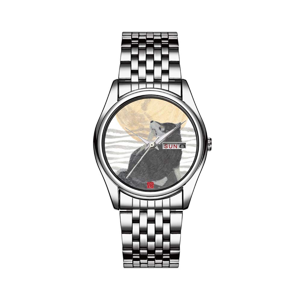 Männer Luxusuhr 30m Wasserdichte Datum Herrenuhr Sportuhren Herren Armbanduhr Quarz Casual Geschenk Schwarz Shiba Inu, Super Moon Armbanduhr