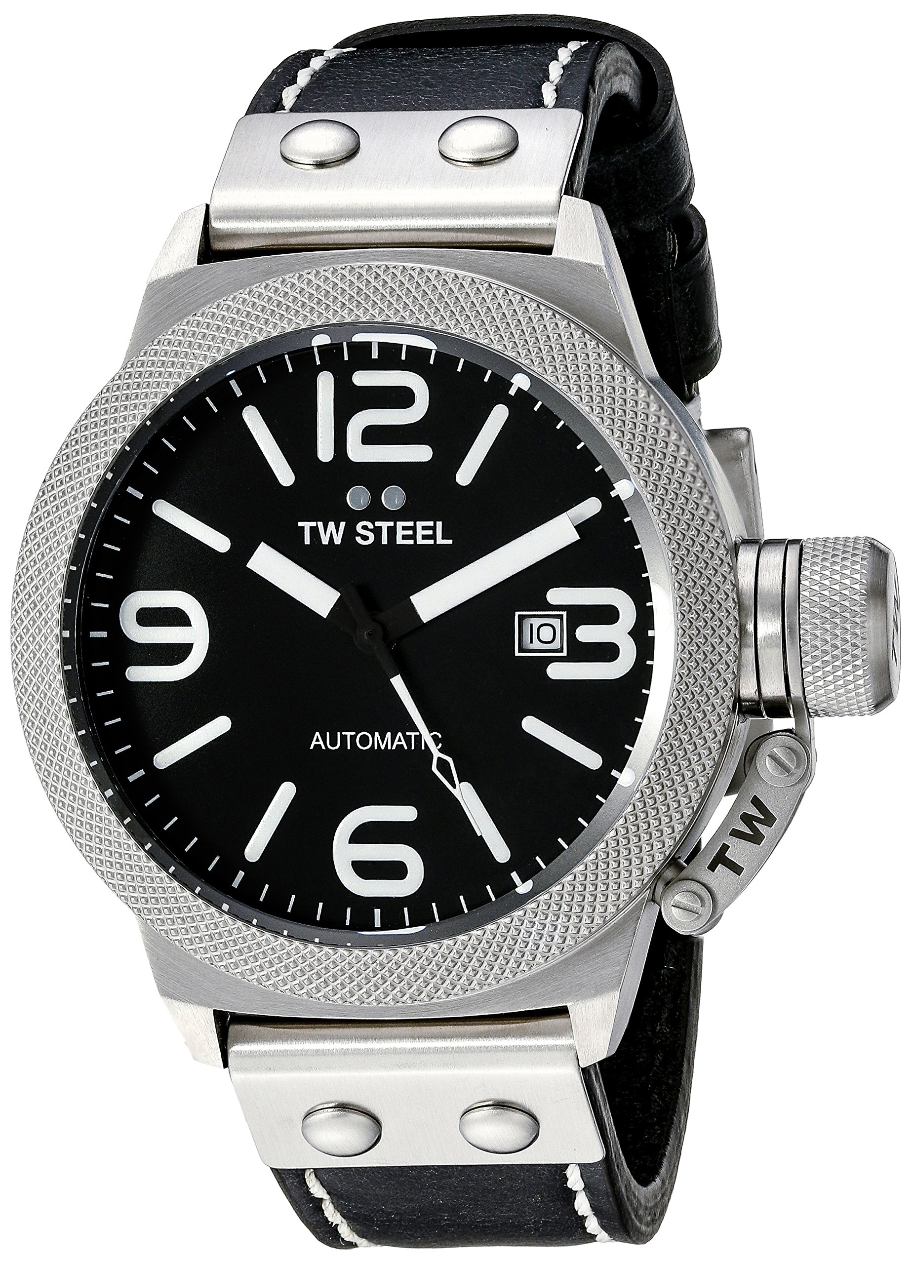 TW Stahl Kantine Leder Quarzuhr mit schwarzem Zifferblatt Analog-Anzeige und schwarz Lederband