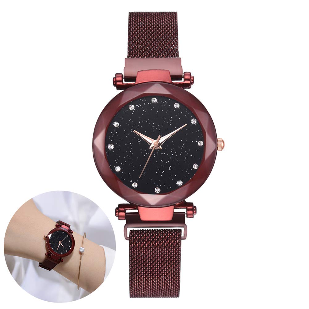 Wudi Luxus-Uhren Strass Uhr-Magnet-Armband Quarz Damenuhr den Sternenhimmel Verbindung simuliert rote Diamant Uhren-Armbänder-Hot